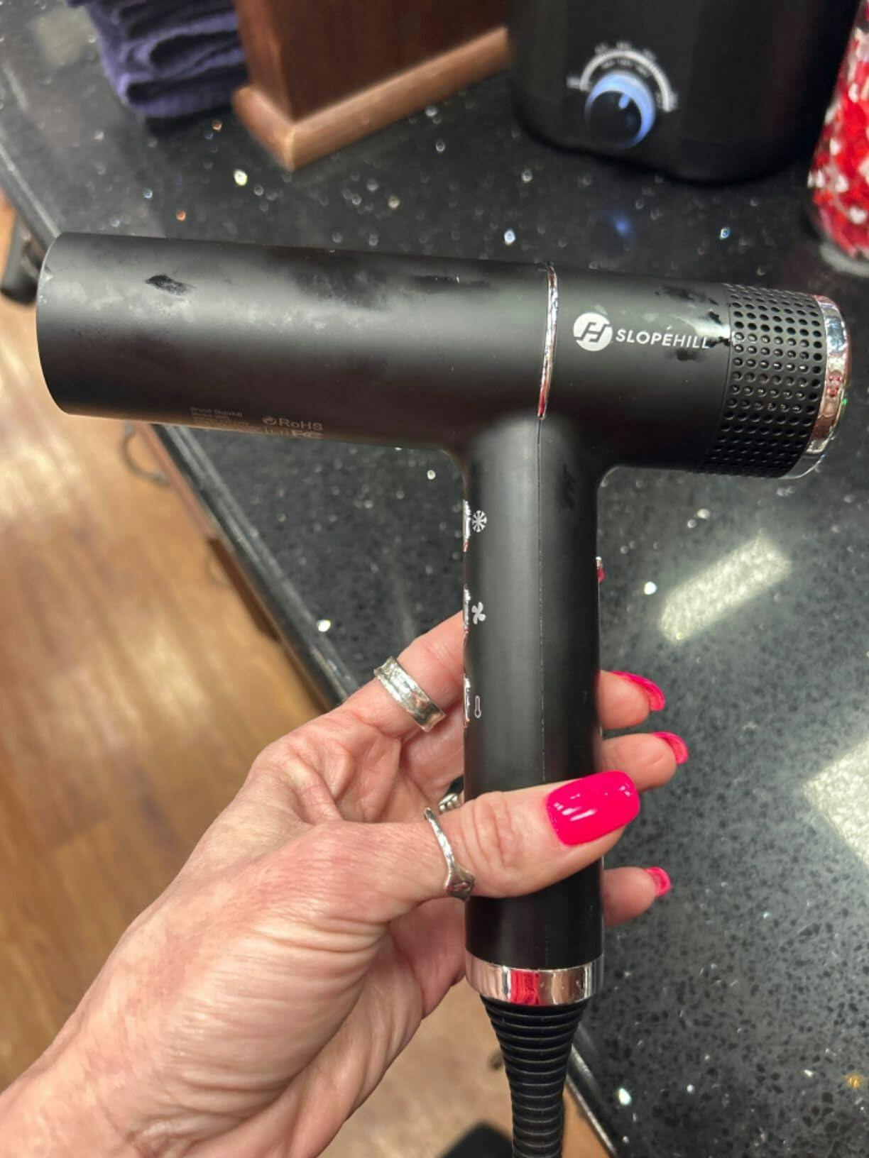 Locate us on Amazon under these product titles:Slopehill Super Fast 110,000 RPM Hair Dryer | Smooth, Frizz-Free Hair with Ionic Power | Lightweight, 3 Heat Settings & Memory Function Oxy Active Technology | Led Display